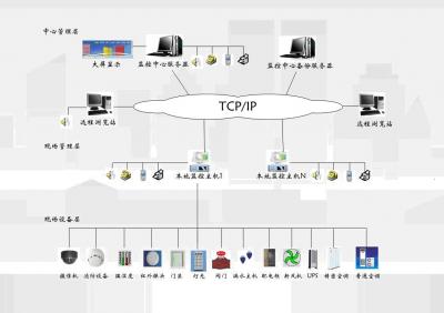 系统主要监控对象包括:为机房内所有设备系统供电的变配电柜、发电机、UPS、UPS蓄电池等动力设备,以及保证设备良好运行的环境系统,如:温度、湿度探测系统、空调系统、照明控制系统、监控管理人员出入和考勤的门禁系统,以及消防报警系统和其他传输控制设备。所有监控对象可以分布在一个独立机房内,形成一套完整的监控系统本地站;也可以是分布在不同区域的多个机房,由监控系统管理站对各监控系统本地站再实施集中监控管理,实现管理者对所有机房及机房内设备环境系统的远程集中联网监控管理。